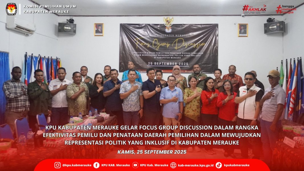 KPU KABUPATEN MERAUKE GELAR FOCUS GROUP DISCUSSION DALAM RANGKA EFEKTIVITAS PEMILU DAN PENATAAN DAERAH PEMILIHAN DALAM MEWUJUDKAN REPRESENTASI POLITIK YANG INKLUSIF DI KABUPATEN MERAUKE