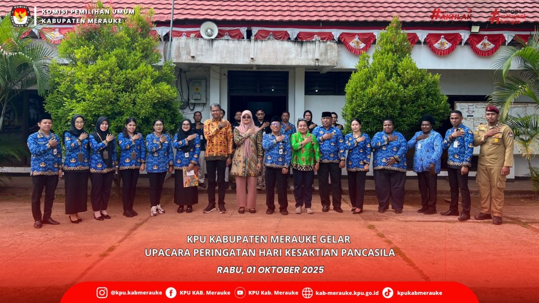 #TemanPemilih, Dalam rangka memperingati Hari Kesaktian Pancasila, 1 Oktober 2025, Komisi Pemilihan Umum Kabupaten Merauke melaksanakan upacara yang berlangsung di lingkungan KPU Kabupaten Merauke. Upacara dipimpin langsung oleh Ketua KPU Kabupaten Merauke dan diikuti oleh Anggota, Sekretaris, Kasubbag, serta seluruh jajaran staf dan pegawai KPU Kabupaten Merauke. Melalui momentum ini, KPU Kabupaten Merauke meneguhkan komitmen untuk senantiasa mengamalkan nilai-nilai Pancasila dalam kehidupan berbangsa dan bernegara. #KPUMelayani #KPUKabupatenMerauke ....