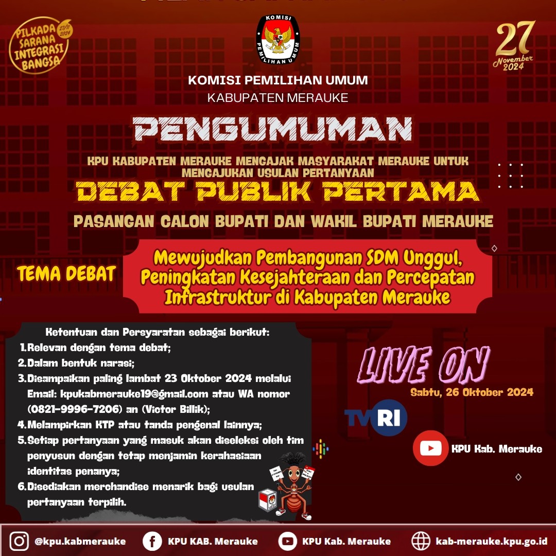 jika kalian tidak mau ketinggalan informasi silahkan diikuti terus perkembangan informasi memlalui sosial media KPU Kabupaten Merauke, baik di FB, IG, Tiktok , Maupun Webnya...
