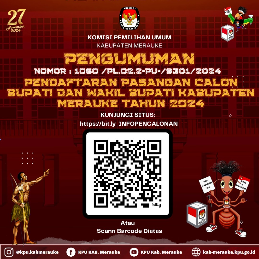 Berikut Merupakan Pengumuman Nomor : 1060/PL.02.2.Pu-9031/2024. tentang " Pendaftaran Pasangan Calon Bupati dan Wakil Bupati Kabupaten Merauke Tahun 2024 "