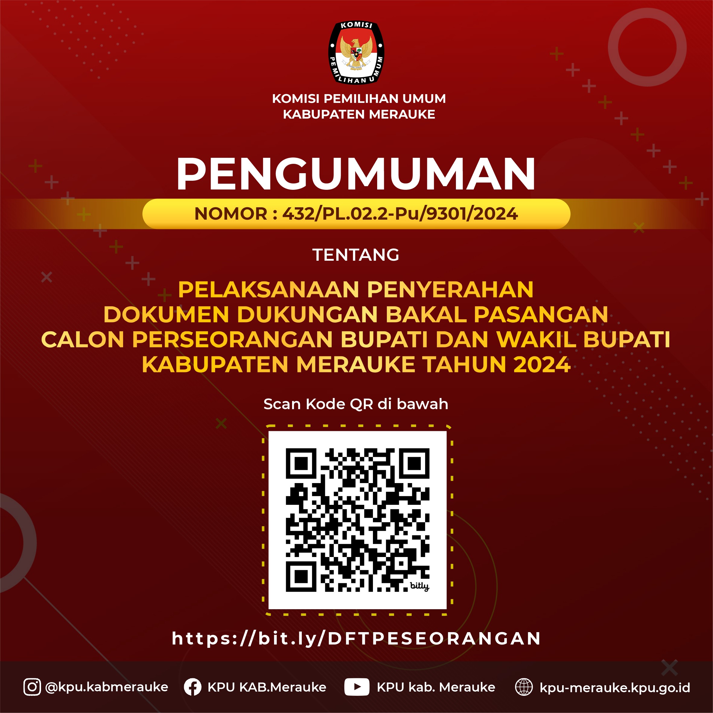 PELAKSANAAN PENYERAHAH DOKUMEN DUKUNGAN BAKAL PASANGAN CALON PERSEORANGAN BUPATI DAN WAKIL BUPATI KABUPATEN MERAUKE TAHUN 2024.