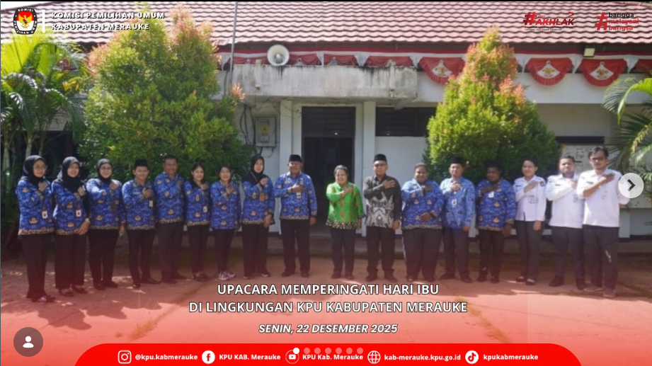 #TemanPemilih, KPU Kabupaten Merauke menggelar upacara bendera dalam rangka memperingati Hari Ibu Nasional ke-97 Tahun, bertempat di halaman Kantor KPU Kabupaten Merauke, 22 Desember 2025.