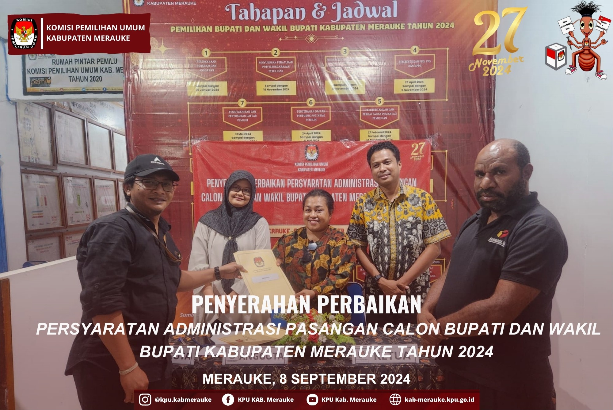 KPU Kabupaten Merauke Menerima Penyerahan Perbaikan Persyaratan Pasangan Calon Bupati dan Wakil Bupati Merauke Tahun 2024 Pada