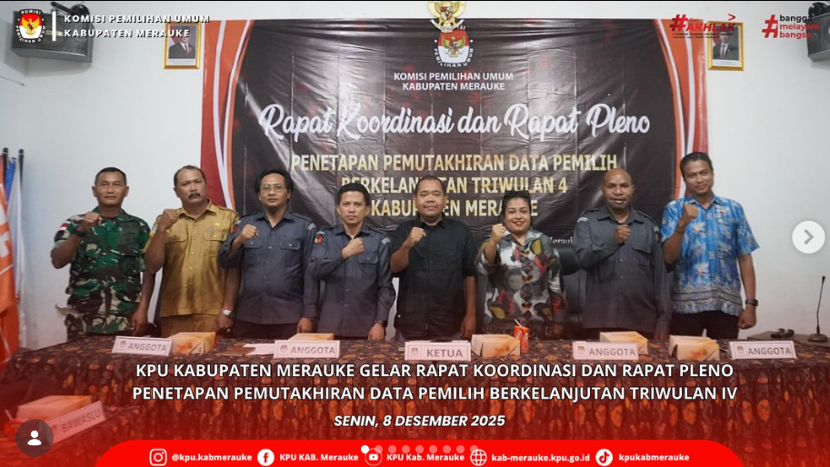 #TemanPemilih, KPU Kabupaten Merauke menggelar Rapat Koordinasi dan Rapat Pleno Penetapan Pemutakhiran Data Pemilih Berkelanjutan (PDPB) Triwulan IV, (8/12/2025).