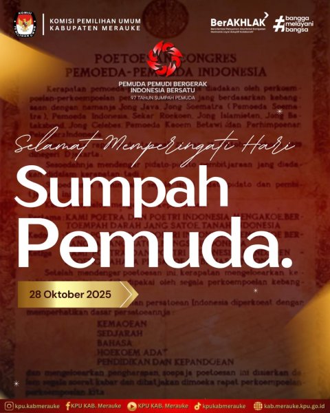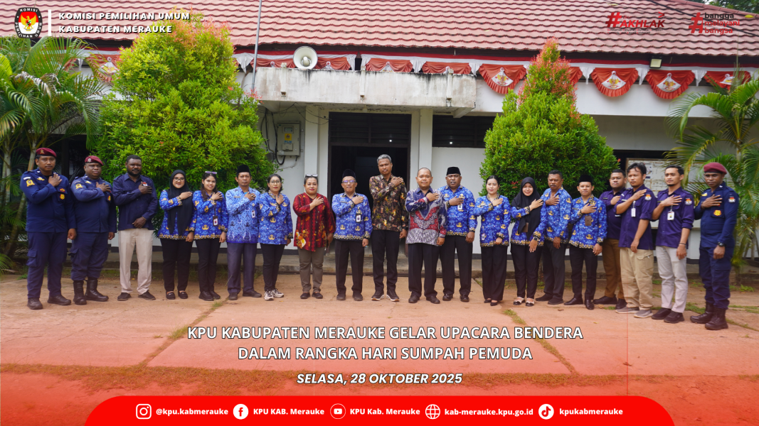 #TemanPemilih, Dalam rangka memperingati Hari Sumpah Pemuda ke-97 yang jatuh pada 28 Oktober 2025, Komisi Pemilihan Umum (KPU) Kabupaten Merauke melaksanakan upacara bendera di halaman kantor KPU Kabupaten Merauke.